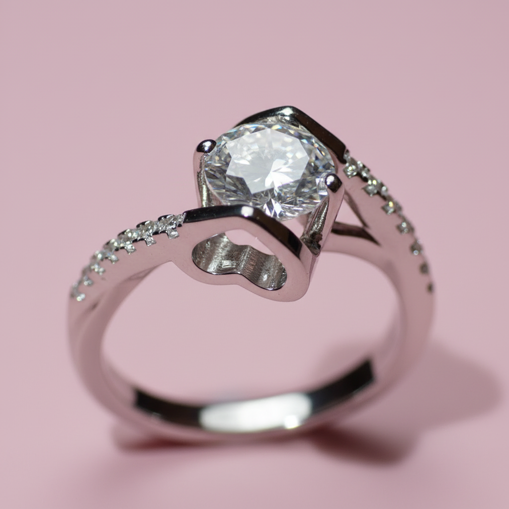 Twisted Solitaire Moissanite Ring with Heart Prongs – 1.0ct