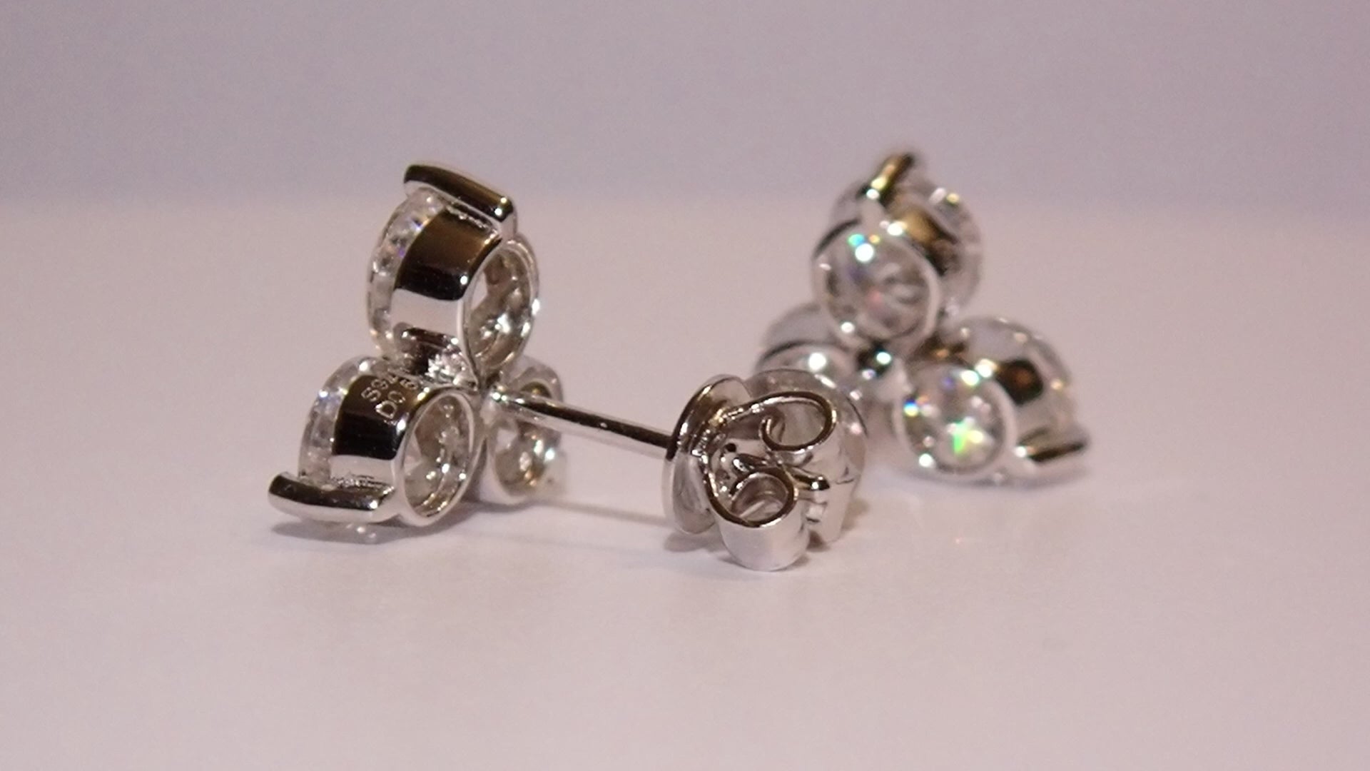 Graduated Three-Stone Moissanite Stud Earrings – 1.0ct per Set