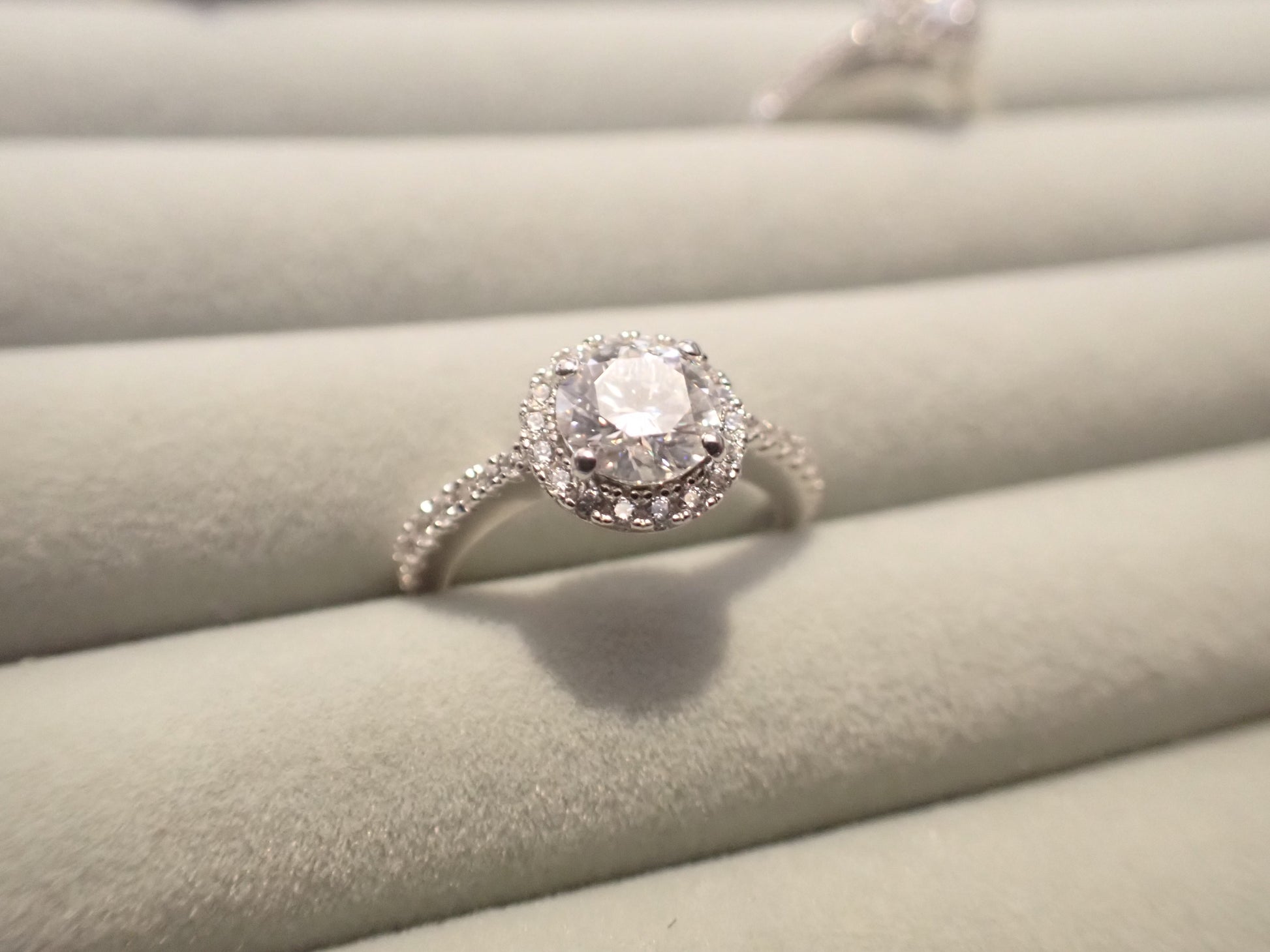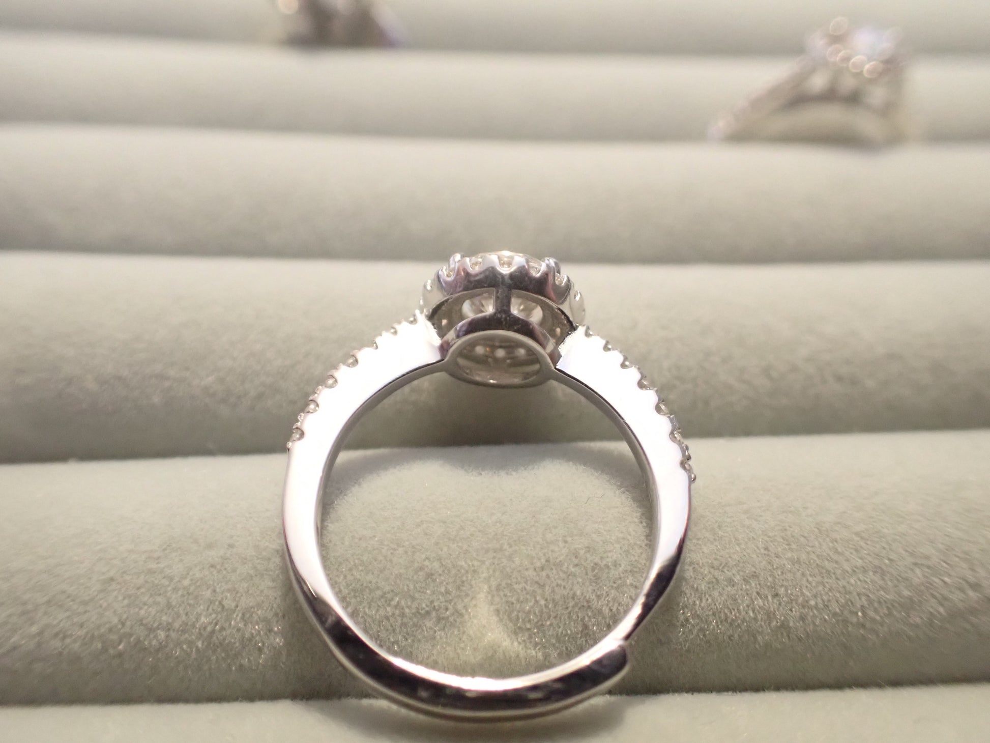 - Halo: 20 pavé-set moissanite accents (1.3mm) surrounding the centre stone