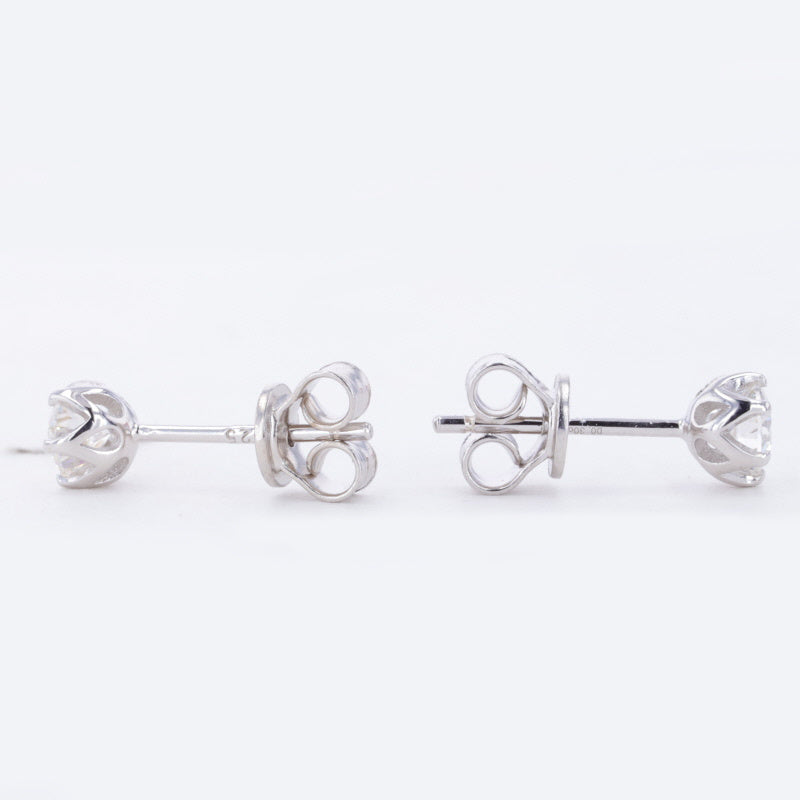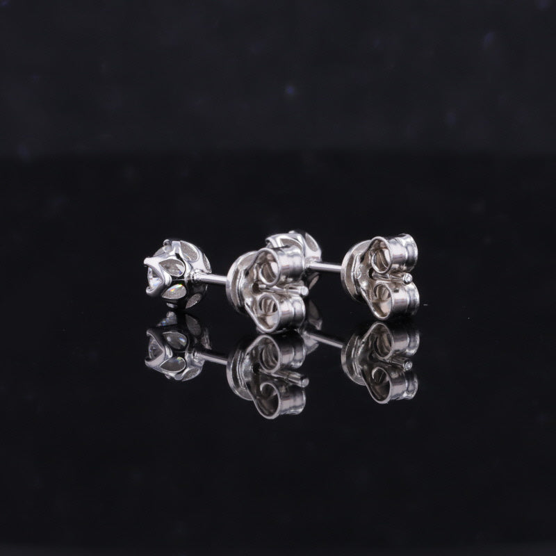 Moissanite Six-Prong Crown Gallery Stud Earrings – 0.60ct Total DEF, 4.0mm, Sterling Silver