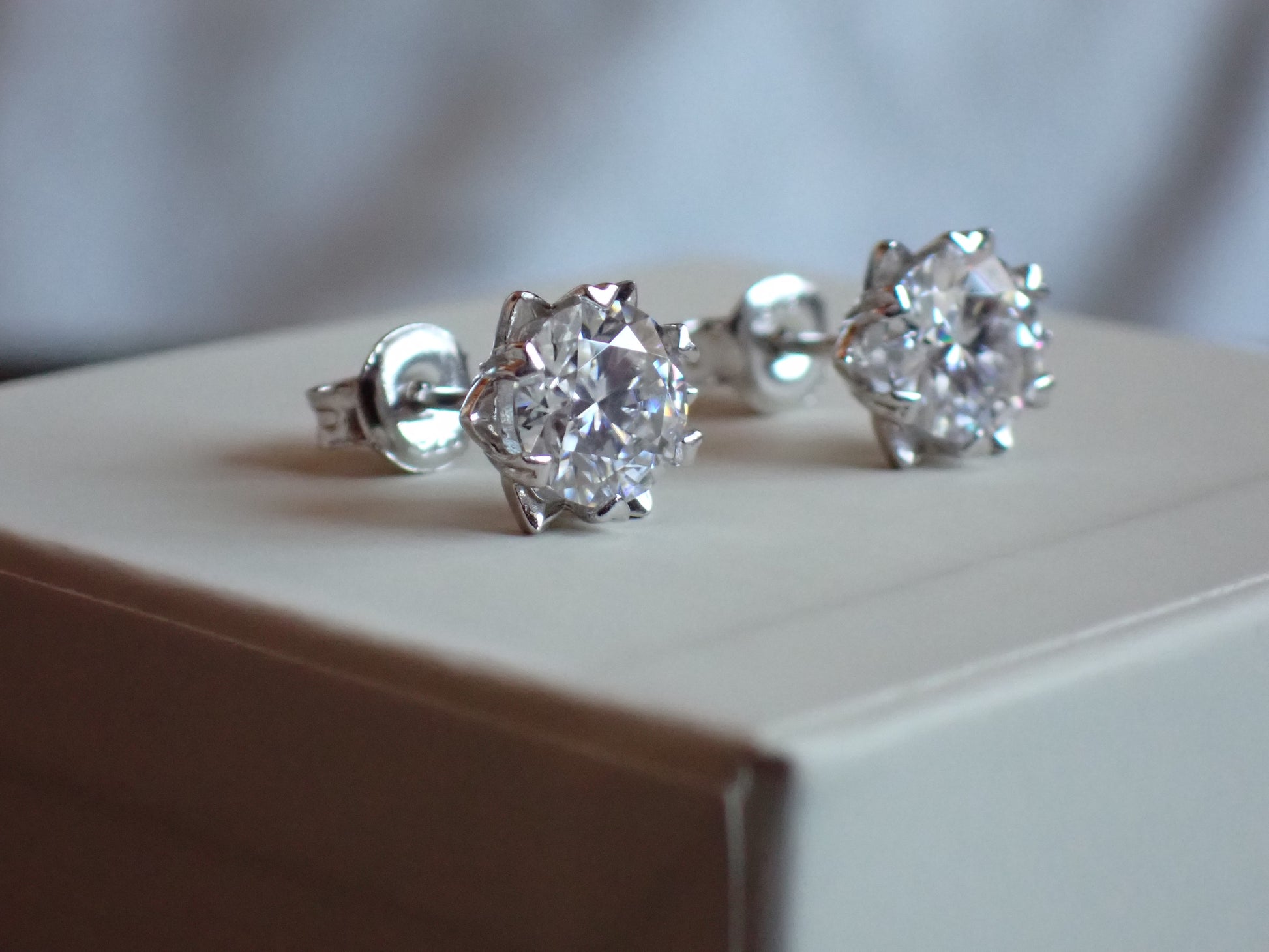 • Stones: Choose 6.5mm (1.0ct each) or 4.0mm (0.30ct each) DEF moissanite per earring