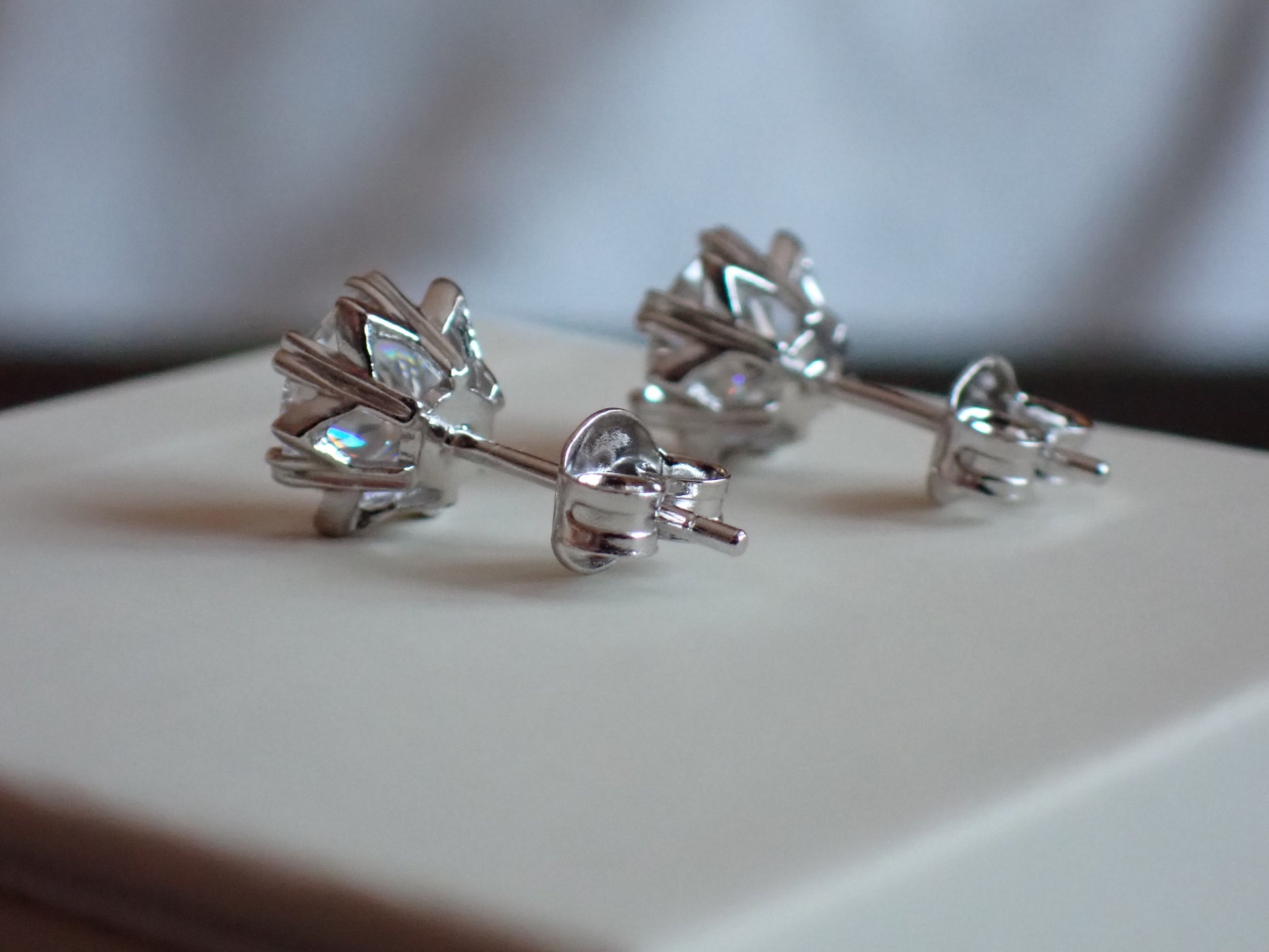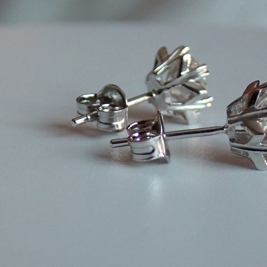 • Design: Classic solitaire studs with a unique heart-prong twist