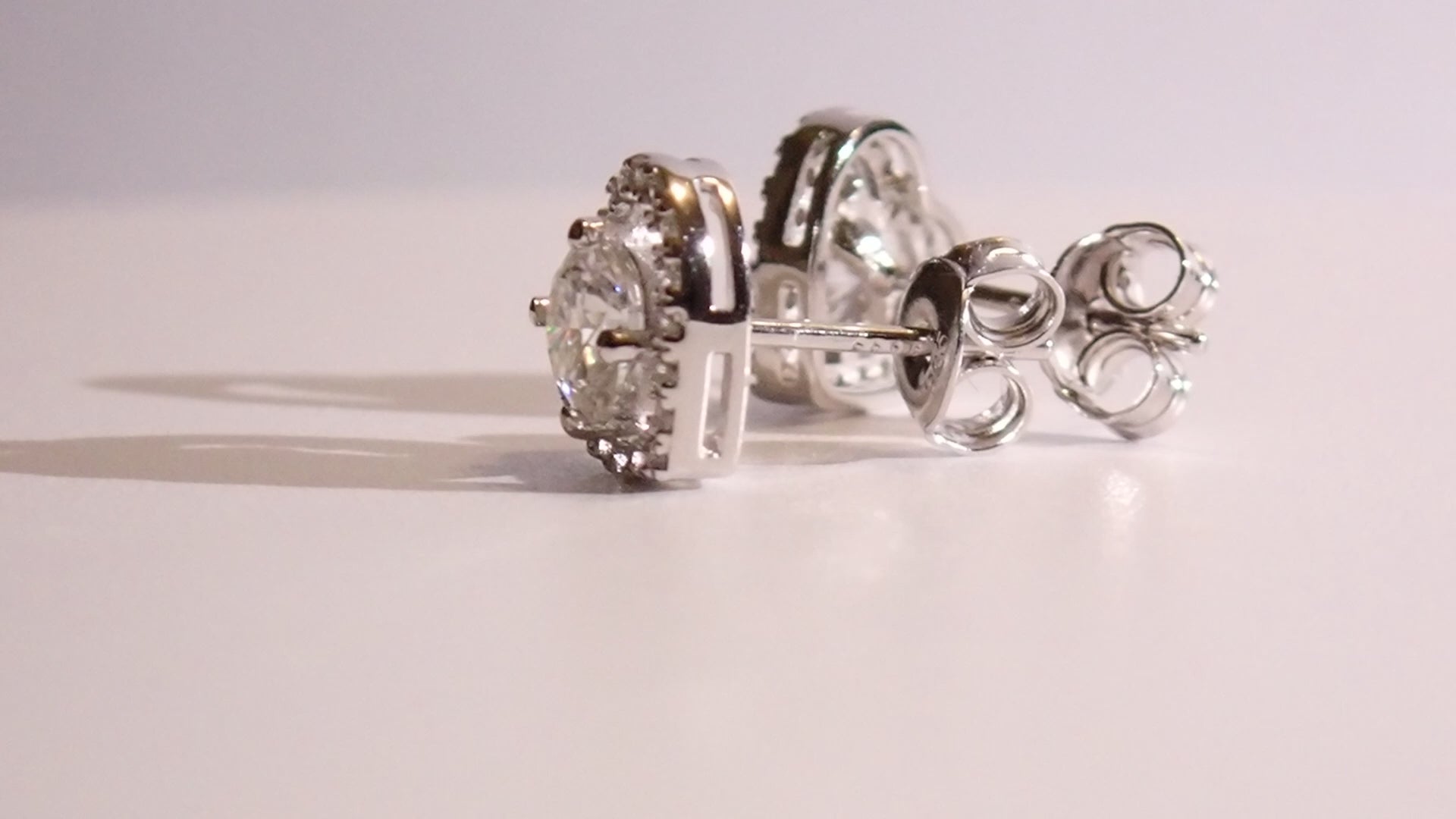 Moissanite has a higher refractive index (2.65) than diamonds (2.42), meaning it produces more fire, brilliance, and rainbow sparkle. Your heart halo studs will catch light from every angle and create dazzling displays of colour.