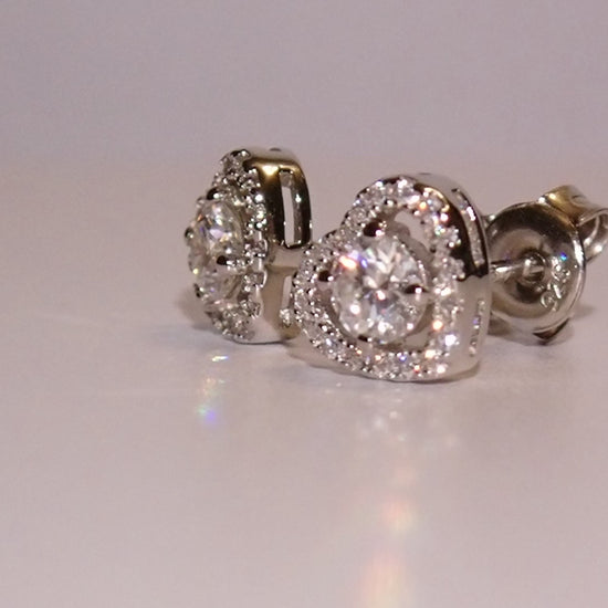 Celebrate love with our stunning heart halo stud earrings. Featuring a beautiful heart-shaped design surrounded by a sparkling halo of moissanite stones in sterling silver. Available in 0.6ct and 1ct total weight. The perfect romantic gift for Valentine's Day, anniversaries, or any special moment.