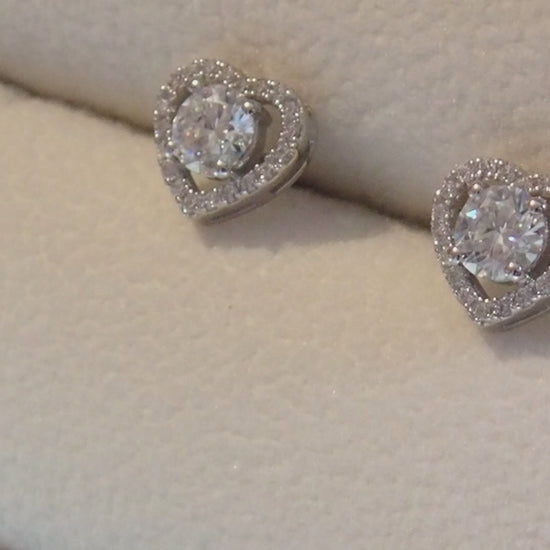 The halo setting surrounds the heart with additional sparkle, amplifying the brilliance and creating a luxurious look that rivals diamond earrings at a fraction of the cost. Crafted in sterling silver, these romantic studs are perfect for expressing love, celebrating milestones, or treating yourself to something special.